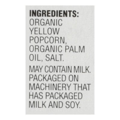 INGREDIENTS: Organic Yellow Popcorn, Organic Palm Oil, Salt.