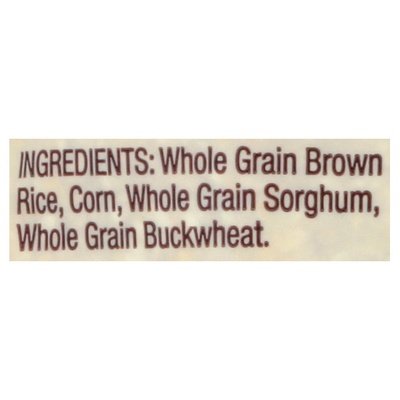 INGREDIENTS: Whole Grain Brown Rice, Corn, Whole Grain Sorghum, Whole Grain Buckwheat.