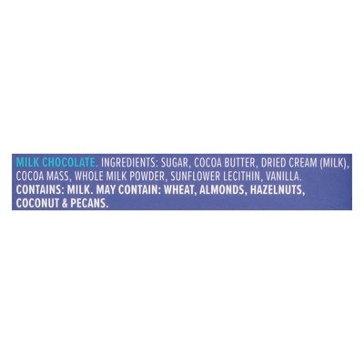 INGREDIENTS: Sugar, Cocoa Butter, Dried Cream (Milk), Cocoa Mass, Whole Milk Powder, Sunflower Lecithin, Vanilla.