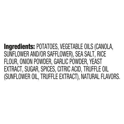 INGREDIENTS: Potatoes, Vegetable Oils (Canola, Sunflower and/or Safflower), Sea Salt, Rice Flour, Onion Powder, Garlic Powder, Yeast Extract, Sugar, Spices, Citric Acid, Truffle Oil (Sunflower Oil, Truffle Extract), Natural Flavors.