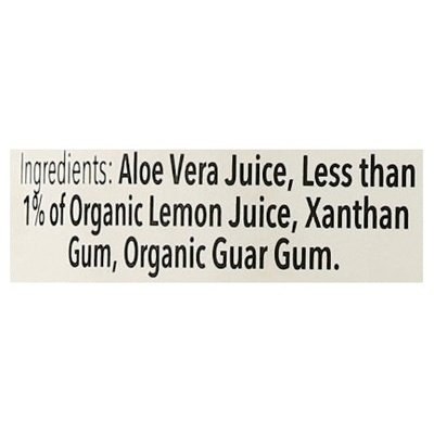 INGREDIENTS: Organic Aloe Vera Juice, Contains Less than 1% Organic Lemon Juice.