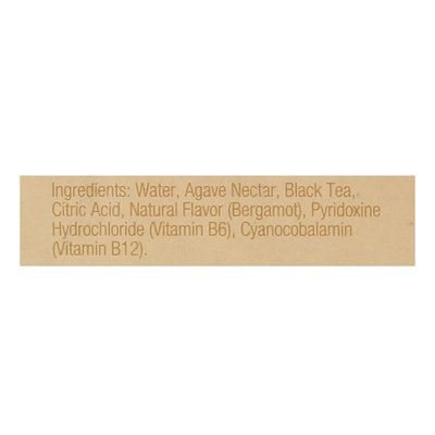 INGREDIENTS: Water, Agave Nectar, Black Tea, Citric Acid, Natural Flavor (Beragamot), Pyridoxine Hydrochloride (Vitamin B6), Cyanocobalamin (Vitamin B12).