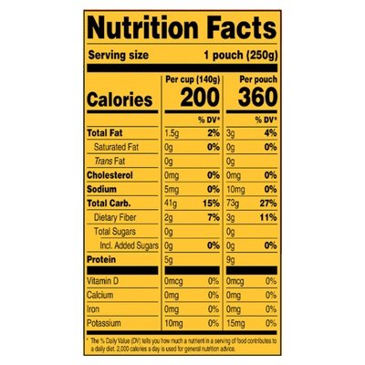 INGREDIENTS: Water, Basmati Rice (Organic); Less than 2% of: Sunflower Oil (Organic) and/or Canola Oil (Organic) and/or Soybean Oil (Organic).