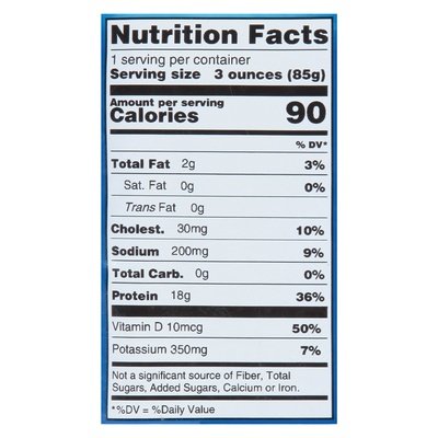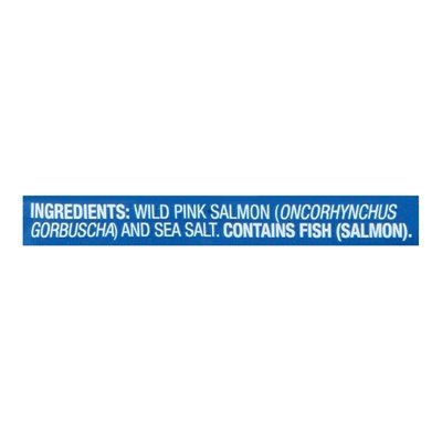 DESCRIPTION: Skinless & boneless. 18 g protein. Averages 524 mg EPA and DHA Omega 3 per serving. Non-GMO Project verified. nongmoproject.org. Our wildly good promise. Wildly good for the planet. Wildly good for you. Wildly good taste. Pure salmon & sea salt and nothing else! Ready to eat. www.wildplanetfoods.com. Sustainably caught in Alaska. Sustainably caught in Alaska. < Wild Pink Salmon (Oncorhynchus Gorbuscha) and Sea Salt, Contains Fish (Salmon).