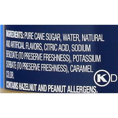 INGREDIENTS: Pure Cane Sugar, Water, Citric Acid, Natural and Artificial Flavors, Potassium Sorbate (to Preserve Freshness), Sodium Benzoate (to Preserve Freshness), Caramel Color.