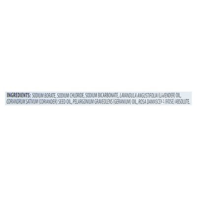 INGREDIENTS: Sodium Borate, Sodium Chloride, Sodium Bicarbonate, Lavandula Angustifolia (Lavender) Oil, Coriandrum Sativum (Coriander) Seed Oil, Pelargonium Graveolens (Geranium) Oil, Rosa Damascena (Rose) Absolute.