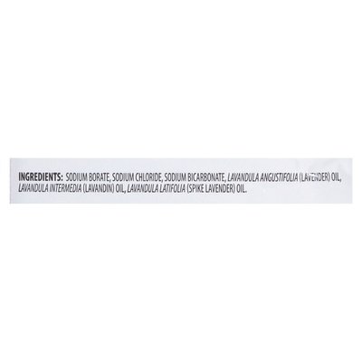 INGREDIENTS: Sodium Borate, Sodium Chloride, Sodium Bicarbonate, Lavandula Angustifolia (Lavander Oil), Lavandula Intermedia (Lavandin) Oil, Lavandula Latifolia (Spike Lavender) Oil.