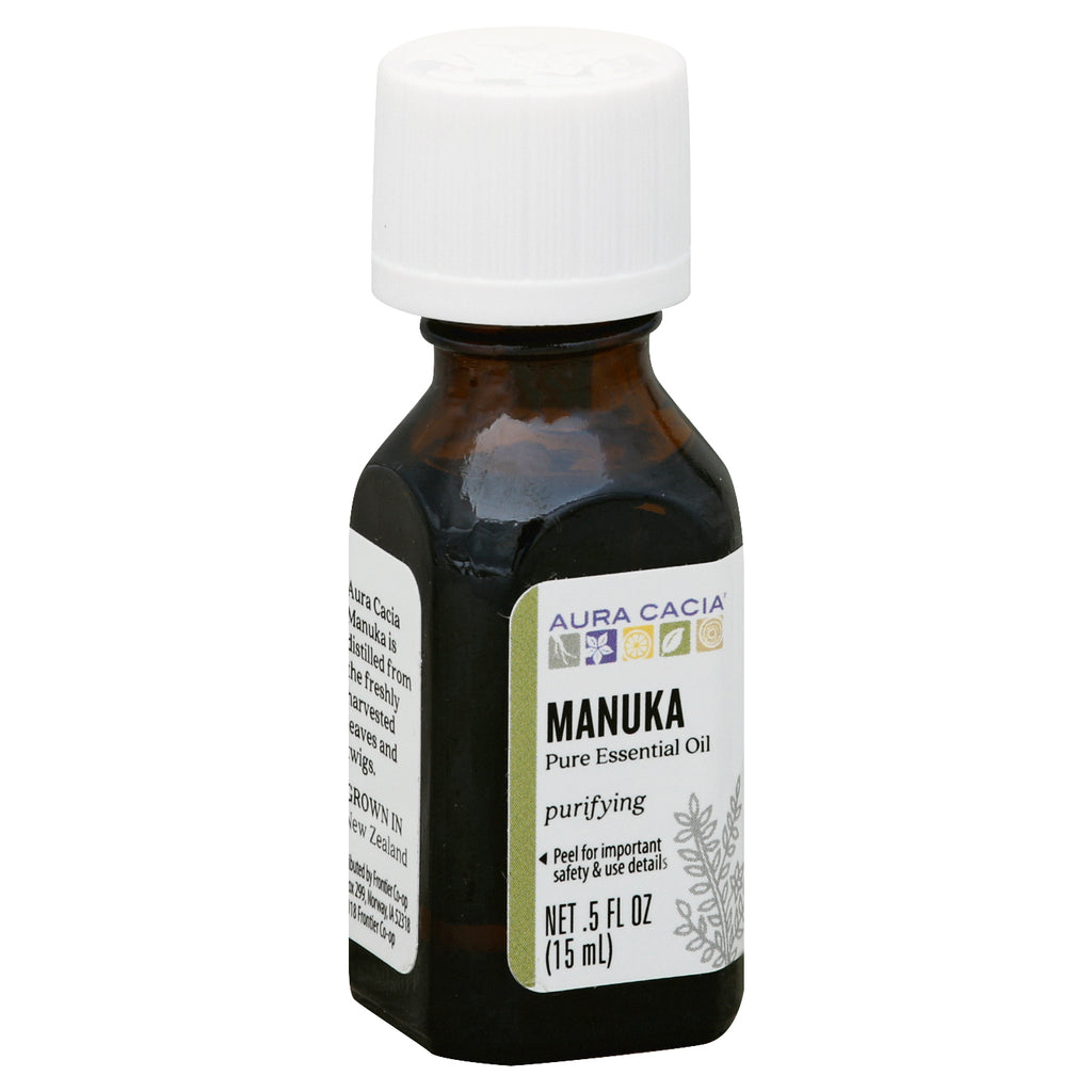 PRODUCT DETAILS: Aura Cacia Manuka is distilled from the freshly harvested leaves and twigs. Our Promise: single botanical; no synthetics; tested for authenticity; not tested on animals. Positive change project. Grown in New Zealand.