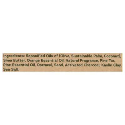 DESCRIPTION: Smell the squatch. Oatmeal & sand heavy grit 5 oz bar. For men's daily use. Doc's Notes: Lather up this cold process soap and scrub down daily. Great for all skin types. - Dr. Squatch. No harsh chemicals. Cold process. Rugged, woodsy, & strong, just like a squatch man should be. Smell like old growth forest. Just what the doctor ordered. drsquatch.com. Catch us in the wild: (at)drsquatch. Sustainably sourced. Handcrafted in the U.S.A. < Saponified Oils of (Olive, Sustainable Palm, Coconut), Shea Butter, Orange Essential Oil, Natural Fragrance, Pine Tar, Pine Essential Oil, Oatmeal, Sand, Activated Charcoal, Kaolin Clay, Sea Salt.