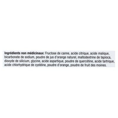 INGREDIENTS: Non-Medicinal Ingredients: Cane Fructose, Citric Acid, Malic Acid, Sodium Bicarbonate, Natural Orange Juice Powder, Tapioca Maltodextrin, Silicon Dioxide, Glycine, Aspartic Acid, Quercetin Powder, Tartaric Acid, Cysteine HCl, Orange Fruit Powder, Monk Fruit Powder.