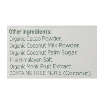 INGREDIENTS: Other Ingredients: Organic Cacao Powder, Organic Coconut Milk Powder, Organic Coconut Palm Sugar, Pink Himalayan Salt, Organic Monk Fruit Extract. Superfood Protein Blend: Organic Pea Protein (Pisum sativum) Powder (Seed), Organic Hemp Protein (Cannabis sativum) Powder (Seed), Organic Chia Protein (Salvia hispanica) Powder (Seed), Organic Pumpkin Protein (Cucurbita pepo) Powder (Seed), Organic Coconut Protein (Cocos nucifera) Powder (Seed), Organic Ashwagandha (Withania Somnifera) Extract (Root), Organic Eleuthero (Eleutherococcus Senticosus) Extract (Root), Organic Chaga (Inonotus Obliquus) Extract (Fruiting Body), Organic Cordyceps (Cordyceps Militaris) Extract (Fruiting Body), Organic Reishi (Ganoderma Lucidum) Extract (Fruiting Body), Organic Turkey Tail (Trametes Versicolor) Extract (Fruiting Body), Organic Lion's Mane (Hericium Erinaceus) Extract (Fruiting Body).