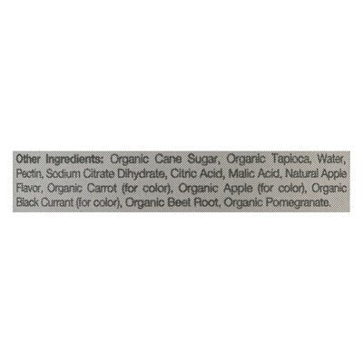 INGREDIENTS: Other Ingredients: Organic Cane Sugar, Organic Tapioca, Water, Pectin, Sodium Citrate Dihydrate, Citric Acid, Malic Acid, Natural Apple Flavor, Organic Carrot (for Color), Organic Apple (for Color), Organic Black Currant (for Color), Organic Beet Root, Organic Pomegranate.