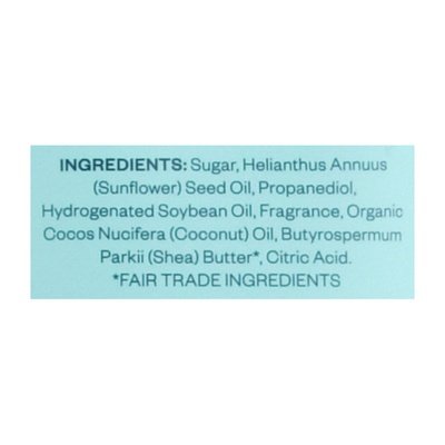 INGREDIENTS: Sugar, Helianthus Annuus (Sunflower) Seed Oil, Propanediol, Hydrogenated Soybean Oil, Fragrance, Organic Cocos Nucifera (Coconut) Oil, Butyrospermum Parkii (Shea) Butter (Fair Trade Ingredients), Citric Acid.