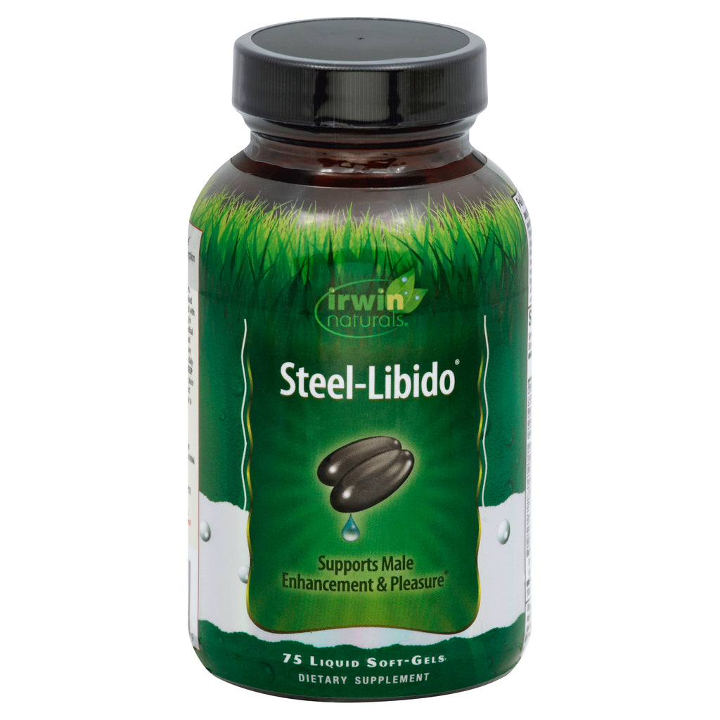 PRODUCT DETAILS: Dietary Supplement. Supports male enhancement & pleasure. Steel Libido supports and inspires sexual vitality. This powerful formula combines traditional botanicals and targeted nutrients to support male enhancement and pleasure. Use this product daily to help maintain an active sex life, or occasionally as needed to maximize enjoyment. Use Both Together to Maximize Results: Steel-Libido to support male enhancement & pleasure. Steel-Libido Red to support blood-flow & male physical response. What Makes Us Different: Liquid Soft-Gels - The nutrients in these easy-to-swallow liquid soft-gels are released fast. Pass: Quality tested guaranteed. Quality Assurance - Irwin Naturals is committed to providing the highest quality products for your health. We employ compliance testing to ensure purity and potency. Global Responsibility - Over the years we have donated to organizations that support the environment and the health of our children. Patented BioPerine - BioPerine enhances the bioavailability, absorption and potency of many nutrients. Distributed, formulated and quality tested by: Irwin Naturals. www.IrwinNaturals.com. Questions: Contact Consumer Affairs 1-800-297-3273 weekdays 8:00 AM to 5:00 PM (PST). To receive tips on how to improve your health, please visit us at: www.IrwinNaturals.com/wellness1. Full disclosure ingredient panel. No preservatives added. (These statements have not been evaluated by the Food and Drug Administration. This product is not intended to diagnose, treat, cure or prevent any disease.)
