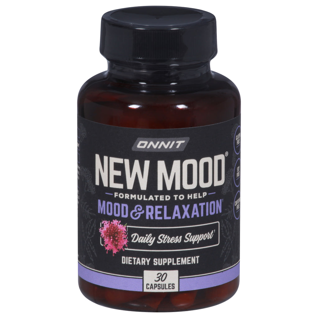 PRODUCT DETAILS: Dietary Supplement. Gluten free. Soy free. Caffeine free. Formulated to help mood & relaxation. Daily stress support. Supports mood balance. Supports serotonin production. Supports daily calm. Combining the two raw building blocks of serotonin, L-tryptophan and 5-HTP, with a converting catalyst, Vitamin B6, New Mood provides the nutrients to help the body optimize serotonin levels. (These statements have not been evaluated by the Food and Drug Administration. This product is not Intended to diagnose, treat, cure, or prevent any disease.)