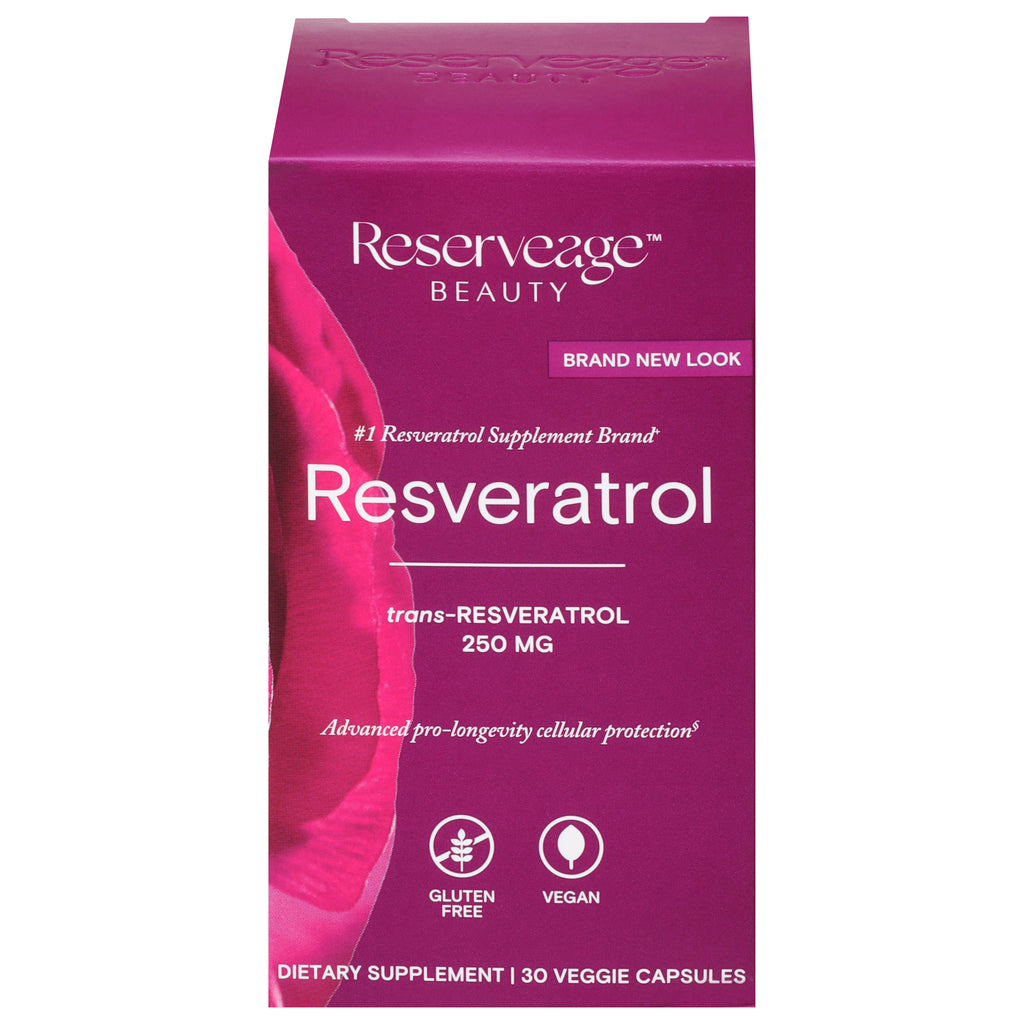 PRODUCT DETAILS: Dietary Supplement. Gluten free. Vegan. Brand new look. No.1 Resveratrol supplement brand (Spins Natural Market Scans 3.21). Advanced pro-longevity cellular protection. Clinically studied ingredients for a healthier, more beautiful you. trans-Resveratrol: An active, stable polyphenol from Japanese Knotweed, a plant containing a higher concentration of trans-Resveratrol. Provides antioxidant protection against free radicals, supports cardiovascular health, physical comfort & cognitive health. Pro-Longevity Factors Blend: A powerful blend of Resveratrol and organic muscadine & French red wine grapes. What does it mean to define your own beauty? It means being unapologetically yourself. It means having confidence that knows no bounds. It means finding harmonious products that support you from the inside, out. Your beauty is on your terms, and we celebrate that. reserveage.com. (hashtag)ReserveageBeauty. Follow us (at)reserveagenutrition. (These statements have not been evaluated by the Food and Drug Administration. This product is not intended to diagnose, treat, cure or prevent any disease).