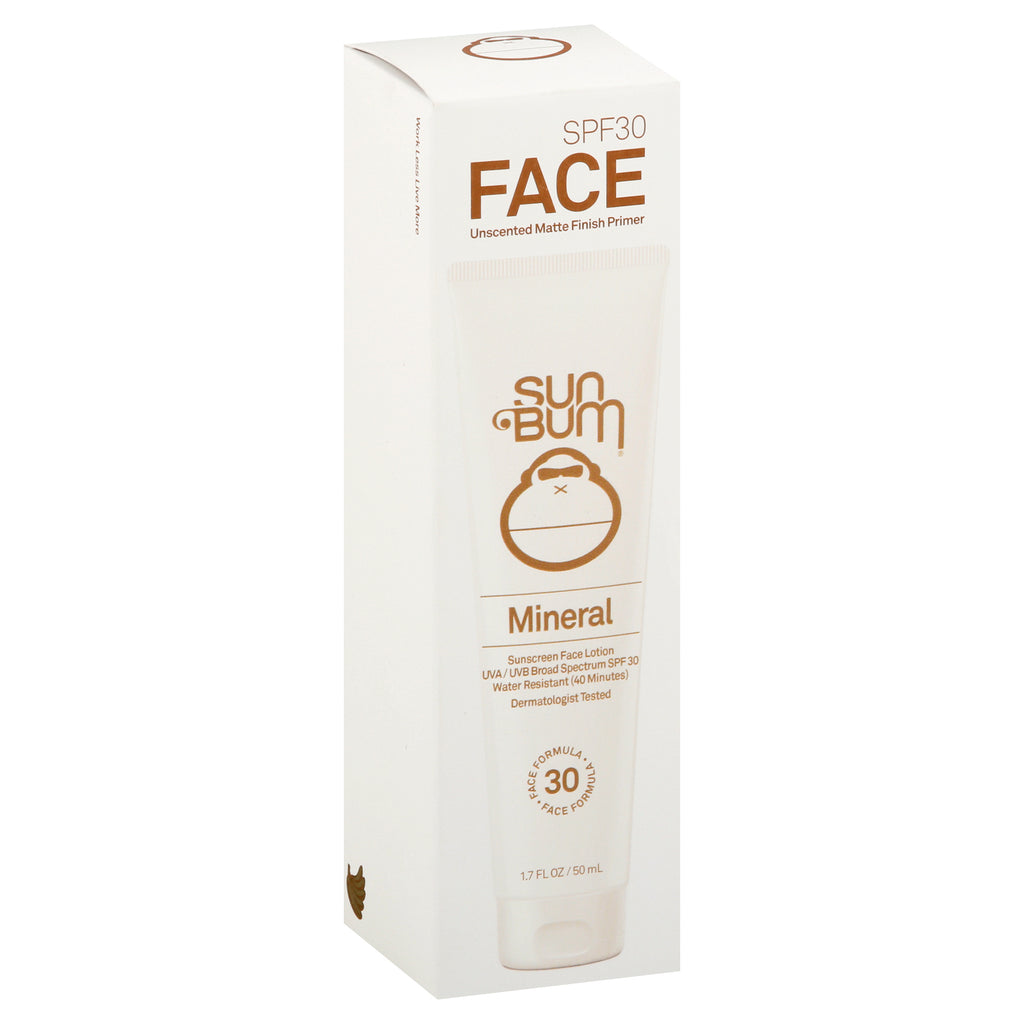 PRODUCT DETAILS: Other Information: Protect this product from excessive heat and direct sun. Vegan. Gluten free. UVA / UVB Broad Spectrum SPF 30. Water resistant (40 minutes). Dermatologist tested. 30: Face formula. Sun Bum mineral sunscreens are carefully formulated to help protect those of us who lvie and love in the sun. Trust the Bum. Paraben free. Fragrance free. Oxybenzone free. Non-comedogenic. TrustTheBum.com. Questions? 1-877-978-6286 Product of USA.