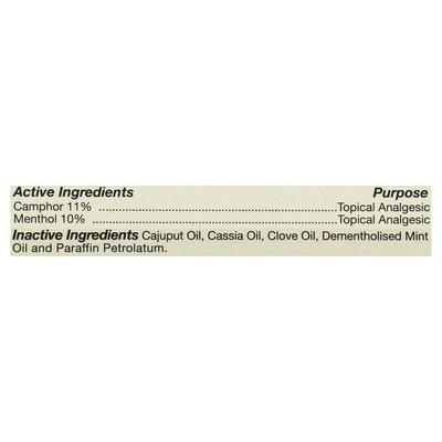 INGREDIENTS: Active Ingredients: Menthol (11 %), Topical Analgesic; Menthol (11 %), Topical Analgesic. Inactive Ingredients: Cajuput Oil, Cassia Oil, Clove Oil, Dementholised Mint Oil and Paraffin Petrolatum.
