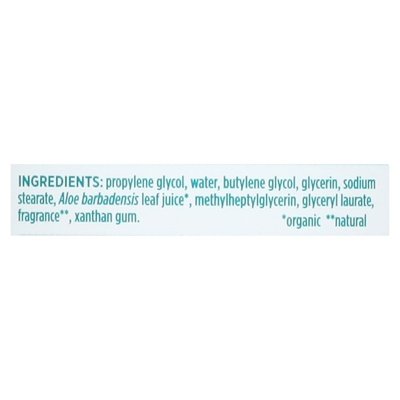 INGREDIENTS: Propylene Glycol, Water, Butylene Glycol, Glycerin, Sodium Stearate, Aloe Barbadensis Leaf Juice (Organic), Methylheptylglycerin, Glyceryl Laurate, Fragrance (Natural), Xanthan Gum.