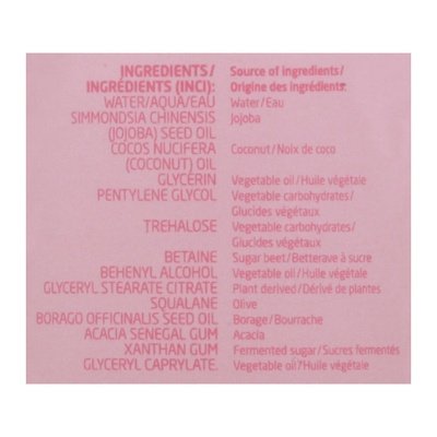 INGREDIENTS: Water/Aqu/Eau, Simmondsia Chinensis (Jojoba) Seed Oil, Cocos Nucifera (Coconut) Oil, Glycerin, Pentylene Glycol, Trehalose, Betaine, Behenyl Alcohol, Glyceryl Stearate Citrate, Squalane, Borago Officinalis Seed Oil, Acacia Senegal Gum, Xanthan Gum, Glyceryl Caprylate.