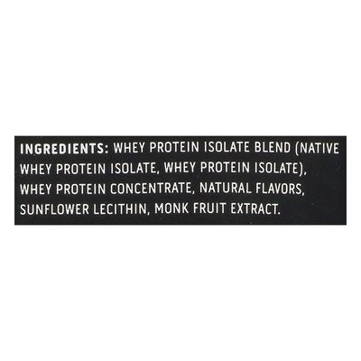 INGREDIENTS: Whey Protein Isolate Blend (Native Whey Protein Isolate, Whey Protein Isolate), Whey Protein Concentrate, Natural Flavors, Sunflower Lecithin, Monk Fruit Extract.