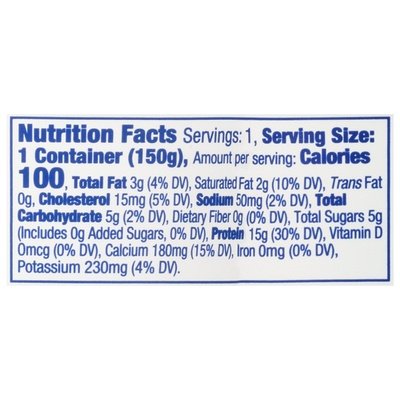 PRODUCT DETAILS: All natural lowfat (2% milkfat) greek strained yogurt. 5 g sugars. 15 g protein. 100 calories. Lowfat (2% milkfat). Certified gluten-free. gfco.org. 2% milkfat. No added sugar (contains naturally occurring milk sugar - not a low calorie food). Non-GMO Project verified. nongmoproject.org. Pronounced: Fa-yeh! Milk produced without the use of rBST. The FDA has said no significant difference has been shown, and no test can now distinguish, between milk derived from rBST treated and untreated cows. Grade A. 1-866-962-5912 Mon-Fri.