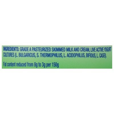 INGREDIENTS: Grade A Pasteurized Skimmed Milk and Cream, Cultures, Live Active Yogurt Cultures (L. Bulgaricus, S. Thermophilus, L. Acidophilus, Bifidus, and L. Casei).