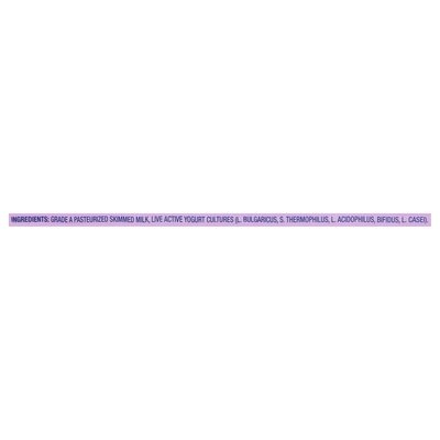 INGREDIENTS:  Grade A Pasteurized Skimmed Milk, Live Active Yogurt Cultures (L. Bulgaricus, S. Thermophilus, L. Acidophilus, Bifidus, L. Casei).