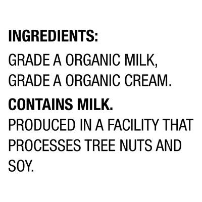 INGREDIENTS: Grade A Organic Milk, Grade A Organic Cream.