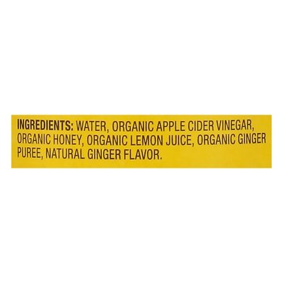 INGREDIENTS: Water, Organic Apple Cider Vinegar, Organic Honey, Organic Lemon Juice, Organic Ginger Puree, Natural Ginger Flavor.