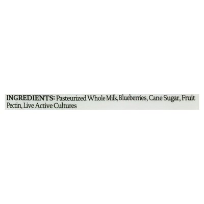 INGREDIENTS: Pasteurized Whole Milk, Blueberry, Cane Sugar, Fruit Pectin, Live Active Cultures: Live Active Yogurt Cultures: S. Thermophilus, L, Delbrueckii Subsp, Bulgaricus, L,Paracasei, Bifidobacterium Spp, L. Acidophilus.