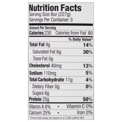 INGREDIENTS: Cultured Pasteurized Whole Milk. Live Active Cultures: S. Thermophilus, L. Bugaricus, Bifidobacterium, L. Acidophilus, L. Paracasei.