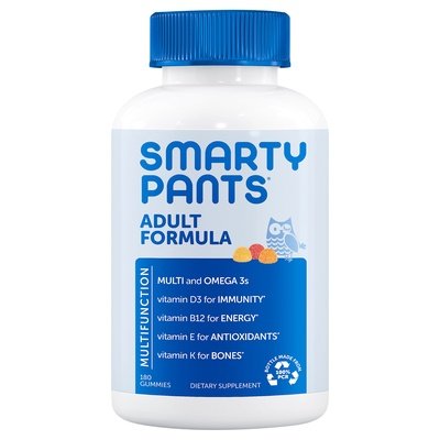 PRODUCT DETAILS: Dietary Supplement. More than a multivitamin. Non GMO. Omega 3s. Folate. D3. B12. E. Iodine. Essential omega 3 oils from sustainable fisheries. We Want You to Know: That every nutrient that goes into our gummies is carefully chosen based on extensive research. And just as much care goes into making them delicious. Superstar Ingredients: omega 3 fish oil from small fish; prebiotic fiber; vitamin D as D3; folate as methylfolate; B12 as methylcobalamin; iodine; vitamin E from sunflower oil. 3 Delicious Flavors: lemon, orange, and strawberry banana. Our Gummy Obsession: We started SmartyPants because we believe the very best vitamins are all in one: premium ingredients delivered in a delicious package at a fair price. The people we care most about take these gummies, so we wake up every day trying to make them better and better. Our goal, good health for the real world. All of it. - Courtney & Gordon Co-CEOs. Vitamin Angels proud supporter. 1 for 1 matching partner. Free of: GMO's, synthetic colors, artificial flavors and preservatives, yeast, wheat, milk, eggs, soy, gluten, peanuts, tree nut allergens, fish allergens, shellfish, and salicylates. Yay! Every batch 3rd party lab tested. For Customer Support: 1-888-751-2291. www.SmartyPantsVitamins.com. Manufactured in California from domestic and imported ingredients.