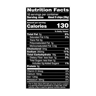 PRODUCT DETAILS: Per 1 oz. Serving: 140 calories; 0.5 g sat fat (3% DV); 200 mg sodium (9% DV), 0g Added sugars (1% DV). Low saturated fat (5 grams of total fat per serving). Non-GMO Project verified. nongmoproject.org. Twice baked. No MSG. Baked with high quality ingredients, Stacy€™s Pita Chips are artfully crafted and simply delicious. Our Simply Naked Pita Chips are seasoned perfectly with sea salt and ready for your Stacy's snacking moments. stacyssnacks.com. Pinterest. Facebook. Instagram. Visit stacyssnacks.com for the Stacy's Fig & Ricotta pairing recipe and more delicious snack ideas. 1-866-4STACYS (478-2297).