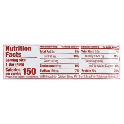 PRODUCT DETAILS: Naturally flavored. 150 calorie bar. 10 g protein. 5 g fiber. 5 g of fat. 5 g sugar. Gluten free. Certified gluten free. gfco.org. Low GI. No artificial sweeteners (Does not contain sucralose, saccharin, aspartame, acesulfame potassium, neotame, or advantame). GI Labs tested. www.thinkproducts.com. ThinkPromise (ThinkPromise: Please visit thinkproducts.com to learn more about our commitment to quality ingredients). Product of Canada.