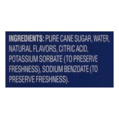 INGREDIENTS: Pure Cane Sugar, Water, Natural Flavors, Citric Acid, Sodium Benzoate (to Preserve Freshness), Potassium Sorbate (to Preserve Freshness).