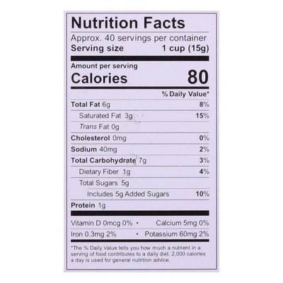 PRODUCT DETAILS: 5 g sugar. Certified gluten free. gfco.org. Certified vegan. Vegan.org. Non-GMO Project verified. nongmoproject.org. Simple ingredients. unrealsnacks.com. Please visit our website for further allergen, nutrition and ingredient info. 75% Fair Trade Certified Ingredients. Made in the USA.
