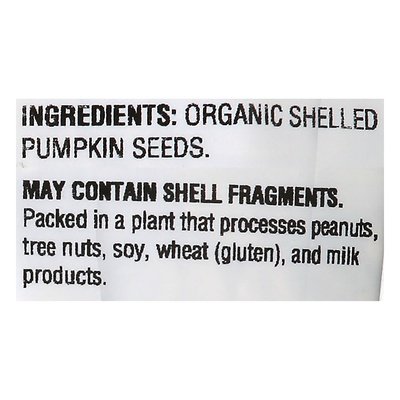 INGREDIENTS: Organic Shelled Pumpkin Seeds.
