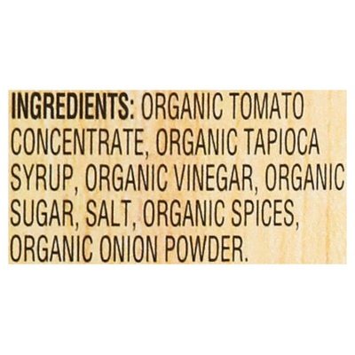 INGREDIENTS: Organic Tomato Concentrate, Organic Tapioca Syrup Organic Vinegar, Organic Sugar, Salt, Organic Spices, Organic Onion Powder.
