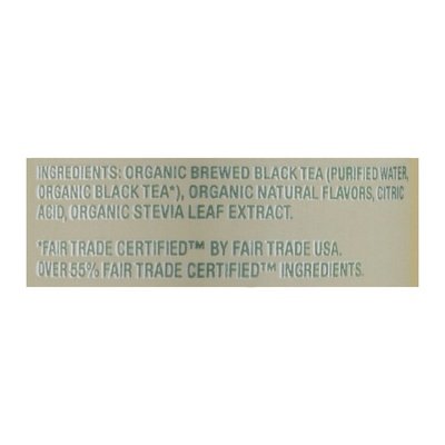 INGREDIENTS: Organic Brewed Black Tea (Purified Water, Organic Black Tea (Fair Trade Certified by Fair Trade USA)), Organic Natural Flavors, Citric Acid, Organic Stevia Leaf Extract.